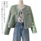 ツイードノーカラージャケット グリーン 緑 秋 春 アウ