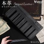 長財布 メンズ 薄い ストライプ 型押し 黒 茶 小銭入れあり