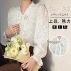 レースブラウス ボウタイ レディース オフィス フォーマル 長袖 きれいめ 秋 春 おしゃれ かわいい トップス シャツ リボンタイ 薄手 ゆったり OL 通勤 オフィス カジュアル フェミニン エレガント 入学式 卒業式 演奏会 ママ