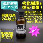 紫外線による影響で劣化、変色してしまった無塗装樹脂部分(フロントワイパー付け根部分(カウルトップ等)、無塗装バンパー、樹脂製サイドミラー等)を新品時の「黒」に復元し、同時にコーティングする樹脂専用ガラスコーティング剤です。