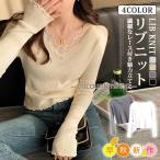 ニット vネック レディース 長袖 インナー トップス レースニット シンプル セーター きれいめ リブニット カジュアル 秋冬 ニットトップス カジュアル