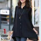 【商品名】 シャツ レディース 長袖 ロング チュニック ロングシャツ 春 夏 秋 冬 ワイシャツ 襟付き aライン 大きいサイズ ゆったり 透け感 重ね着 オーバーサイズ きれいめ フォーマル オフィス カジュアル ビジネス 大人 おしゃれ OL 無地 黒 ブラック