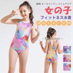 女の子 水着 ワンピース 子供 フィットネス水着 総柄 オールインワン スイムウエア 競泳用 練習用 子供用水着 キッズ水着 競泳水着 プール スクール水着 みずぎ かわいい 幼稚園 こども ベビー 女児 小学生