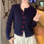 フロントのレッドハートボタンが視線を集める、ガーリー感たっぷりのカーディガン。