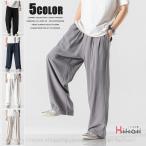 リネンパンツ メンズ ワイドパンツ サルエルパンツ 涼しいズボン ゆったり 薄手 綿麻 ガウチョ ウェストゴム