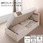 組立設置付きガス圧式跳ね上げ大容量収納ベッド Grand L ・レギュラー 深さ30cm シングル 横開き 薄型スタンダードボンネルコイルマットレス付き 日本製フレーム マットレス付き コンセント付き 収納付きベッド ベッド下 大容量収納 大型収納 高級感 寝心地