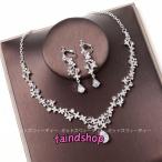 即納 ウェディングネックレス イヤリング シルバー ラインストー