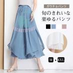 ガウチョパンツ 裾プリーツ 切り替え ワイドパンツ レディース