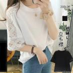 レース トップス 刺繍 ブラウス 半袖 シースルー シャツ ブラウス