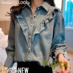 トップス シャツブラウス デニムシャツ デニムブラウス 襟 長袖 Vライン 春 新作