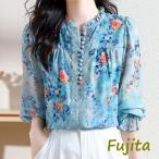 トップス シフォン シフォンブラウス シャツブラウス ボタン ボタニカル柄 花柄 ファッション レディス レディース 春夏 新作