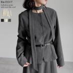 ブラック アイボリー グレー Mサイズ Lサイズ ノーカラージャケット ジャケット アウター 羽織り ウールライク ウールタッチ フェイクウール セットアップ対応 通勤 オフィス オフィスカジュアル オケージョン セレモニー クリスマス ホリデー お正月 年末年始 帰省 忘年会 女子会 クリスマスパーティー スカーフ付き ベルト付き ウエストマーク スカーフ 2点セット ペプラム フレア 体型カバー 美シルエット きれいめ マルチウェイ 2025秋冬 2025A/W 2025AW 爆買