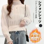 シアーブラウス 長袖 シフォンシャツ 春秋 トップス インナー シャツブラウス レディース プチハイネック フリル トップス 着やせ おしゃれ プルオーバー インナー 透け感