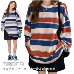 S〜2XL マルチボーダー カットソー 体型カバー 長袖