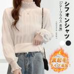 シアーブラウス 長袖 シフォンシャツ 春秋 トップス インナー シャツブラウス レディース プチハイネック フリル トップス 着やせ おしゃれ プルオーバー インナー 透け感