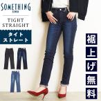 こちらは、SOMETHING(サムシング)のタイトストレートデニムです。タテ糸に綿×レーヨンを使用したストレッチデニムで、なめらかな穿き心地と心地よい伸び感が特徴の1本です。シルエットは、太ももからヒザ下にかけてスッキリ細身のタイトストレート。ステッチ幅やピッチを細かくする事により、脚をより細く見せてくれます。後ろポケットに縦長のポケットを採用し、気になるヒップを小さくすっきりとした印象に。裾をロールアップした抜け感のあるアレンジもおすすめです。