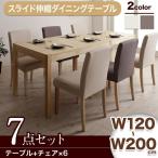 ・商品テーマと内容: 無段階に広がる スライド伸縮テーブル ダイニングセット 6人 7点セット(テーブル+チェア6脚) シンプルタイプ W120-200