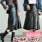 大きいサイズレディース ボトムス スカート フェイクレザーミモレ丈マーメイドスカート ミモレスカート 膝下スカート ミモレ ミモレ丈 膝下 ひざ下 フェイクレザー エコレザー フレア ウエストゴム ギャザー 秋新作 秋服 冬服 LL 2L 3L 4L 5L ブラック 黒 ゴールドジャパン