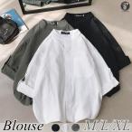 シャツ レディース 春 トップス フォーマル チュニック 七分袖 無地 通勤 OL 着痩せ オシャレ