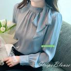 ブラウス ボウタイ シャツ トップス レディース 春 秋 ボウタイリボン シフォンブラウス 長袖 オフィス カジュアル シフォン リボン ストライプ 大きいサイズ きれいめ フォーマル 韓国 20代 30代 40代
