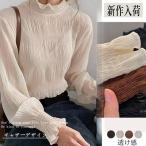 シアーブラウス 長袖 シフォンシャツ 春秋 トップス インナー シャツブラウス レディース プチハイネック フリル トップス 着やせ おしゃれ プルオーバー インナー 透け感