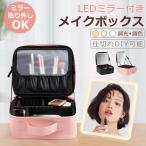 メイクボックス ミラー付き LED 大容量 レザー メイクブラシケー