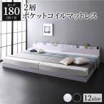 キング180(SS+S) 白 ブラック 連結 ローベッド 2層ポケットコイル キングサイズベッド コンセント 宮付 棚付 キングベッド フロアベッド マットレス付き 黒 ホワイト 照明