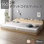 ナチュラル 連結 宮付 クイーン160(SS+SS) マットレス付き フロアベッド 茶 照明 ブラウン 棚付 クイーンサイズベッド クイーンベッド ローベッド 2層ポケットコイル