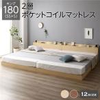 棚付 フロアベッド キングベッド 茶 マットレス付き 宮付 ブラウン 連結 2層ポケットコイル ローベッド キング180(SS+S) ナチュラル キングサイズベッド 照明