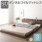 セミダブル コンセント宮棚付き ブラウン ローベッド ボンネルコイル セミダブルベッド マットレス付き