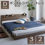 ローベッド ボンネルコイルマットレス付き ブラウン ダブル ダブルベッド コンセント宮棚付き マットレス付き