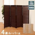 (約)幅45×高さ150cm×4連 衝立 おしゃれ 4連 木製ルーバースクリーン 間仕切り パーテーション ブラウン