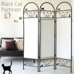 3連 衝立 パーテーション 黒猫 おしゃれ ねこモチーフ 幅40×奥行2×高さ157cm(一連あたり) ブルー ホワイト 白 ブラック 黒 アイボリー