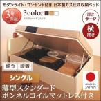 ダークブラウン ナチュラル ホワイト マットレス付き 薄型スタンダードボンネルコイル 組立設置付 白 シングルベッド 跳ね上げ式ベッド 茶 横開き/深さラージ