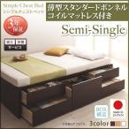 ダークブラウン ナチュラル マットレス付き ホワイト 白 茶 収納付き 薄型スタンダードボンネルコイル 引き出し収納 セミシングルベッド 組立設置付