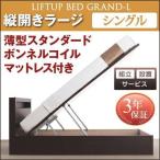 縦開き/深さラージ シングルベッド 跳ね上げ式ベッド マットレス付き 白 組立設置付 大型収納 ホワイト ナチュラル 薄型スタンダードボンネルコイル ダークブラウン