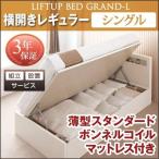 マットレス付き ホワイト 組立設置付 横開き/深さレギュラー ナチュラル シングルベッド 薄型スタンダードボンネルコイル ダークブラウン 茶 白 跳ね上げ式ベッド 大型収納