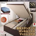 ダークブラウン セミシングルベッド 組立設置付 大型収納 縦開き/深さラージ 白 跳ね上げ式ベッド マットレス付き 茶 薄型スタンダードボンネルコイル ホワイト