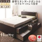 シングルベッド 組立設置付 ナチュラル 茶 引き出し収納付き ホワイト マットレス付き 白 ダークブラウン 薄型スタンダードボンネルコイル