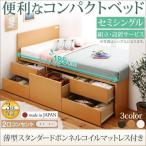 薄型スタンダードボンネルコイル 白 セミシングルベッド 組立設置付 ダークブラウン 日本製 ホワイト 茶 マットレス付き 国産収納ショート丈ベッド 収納付き ナチュラル