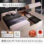 ワイドK200 縦開き シングル2台 マットレス付き 薄型スタンダードボンネルコイル 国産 連結 茶 ダークブラウン 日本製 ホワイト 跳ね上げ式ベッド 組立設置付 白 ナチュラル