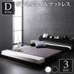 ダブルベッド ボンネルコイルマットレス付き コンセント宮棚付き ローベッド ブラック ダブル マットレス付き