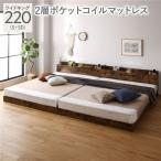 マットレス付き WK220(シングル+セミダブル) フロアベッド 2層ポケットコイルマットレス付 連結ベッド 2台セット ローベッド