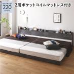 2台セット WK220(シングル+セミダブル) ローベッド すのこ フロアベッド 2層ポケットコイル 連結ベッド マットレス付き