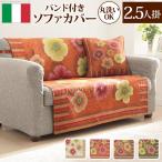 ソファーカバー 2.5人掛け おしゃれ イタリア製 バンド付きソファカバーベージュ オレンジ ブラウン グリーン