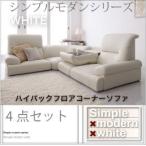 おしゃれ 1人掛け×3+コーナー こたつソファ ハイバックフロアコーナーソファ 白 ローソファー 1人用×3+コーナー 一人掛け 4点セット ホワイト