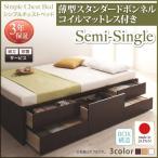 組立設置付 収納付きベッド マットレス付き 薄型スタンダードボンネルコイル セミシングルベッド 引き出し収納 ダークブラウン ナチュラル 白 ホワイト