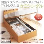 大容量収納 組立設置付 跳ね上げ式ベッド セミシングルベッド 縦開き/深さレギュラー マットレス付き 薄型スタンダードボンネルコイル ダークブラウン 白 ホワイト ナチュラル