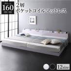 2層ポケットコイル 白 クイーンベッド 照明 フロアベッド 棚付 クイーンサイズベッド ブラック 連結 コンセント ホワイト ローベッド 黒 マットレス付き 宮付 クイーン160(SS+SS)