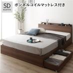 ボンネルコイル コンセント・宮棚・引き出し付き 収納付きベッド 収納付き ブラウン セミダブル マットレス付き セミダブルベッド